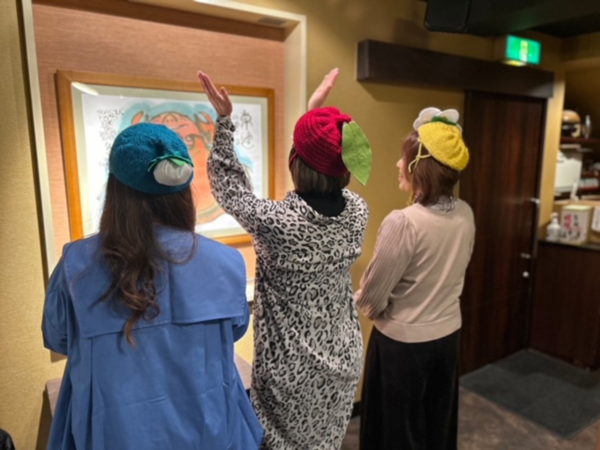 さて、現在社内にはピクミンブルームというゲームをやってる人が多くいて、キャラクターのキーホルダーやらブローチ等買いあさり、盛り上がっています。と、いうことで、幹事3人ピクミンになって今回の忘年会を粛々と進行させていただきました。