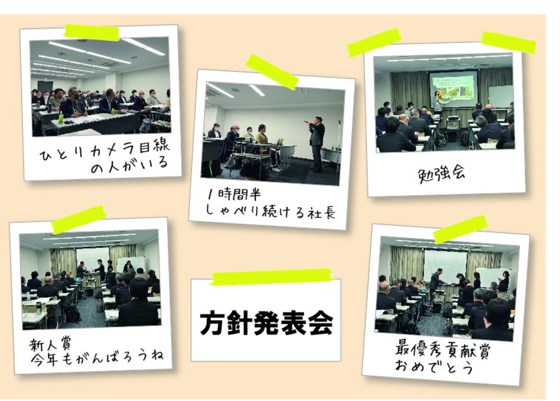 3/28、11期最後の日は忙しい一日でした。午前中には御霊神社様にお越しいただき、ご祈祷を受けて清らかになった心で大阪化学技術館へ移動。12期方針・政策発表会で今後の計画と取り組みについての話しを聞きいたところで、社長からのサプライズ表彰!各課題への取り組みに貢献された5組11人の方々が金賞・銀賞・銅賞として表彰されました。私も銀賞として表彰いただきましたが、賞状の作成と副賞の祝い袋の準備に中身を社長にせびりに行ったりとしていたので、サプライズ感はゼロではありましたが、来期も更に頑張らねばという気持ちになりました。後半はいつもお世話になっている工事会社様にお越しいただき、勉強会を開催していただきました。日頃モヤっとしていたことを、丁寧に教えていただきとても学びのある時間となりました。慌ただしく、会を締めくくり、場所を移して懇親会。春らしい食材を使ったお料理を頂きつつ、社長から指名をうけた方、新しく入社された方の「来期への思い」を聞き、締めくくりは恒例の一本締めでよぉーお、ポン!12期目突入です。