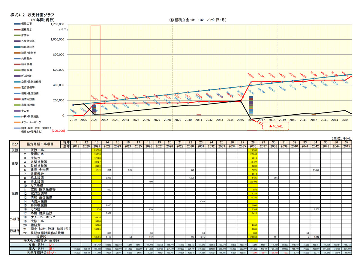 現地調査により建築物や建築設備の状況を詳細に確認し、将来見込まれる修繕工事の内容、修理周期、概算費用を算出し、ご提案。明確な根拠を元に、計画的な修繕工事や修繕積立金額等をご提案致します。