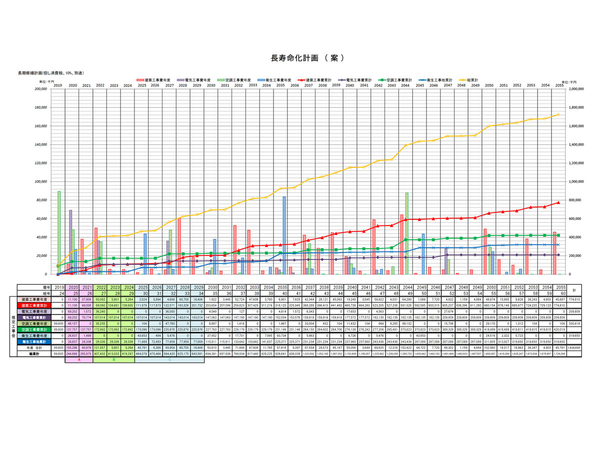建築物を安全に長く利用できるよう、単なる修繕工事ではなく、社会構造の変化や新たなニーズに対応した改良工事で劣化を未然に防ぐよう予測し、既存建物の保全を提案。長期修繕計画と合わせて計画することで、予算に見合った長寿化計画をご提案致します。